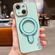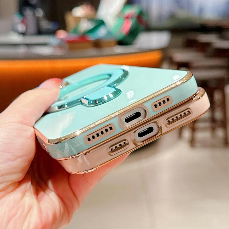 For iPhone 15 Solid Color Electroplated Metal Holder Phone Case(Light Green)