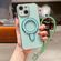 For iPhone 15 Solid Color Electroplated Metal Holder Phone Case with Lanyard(Light Green)