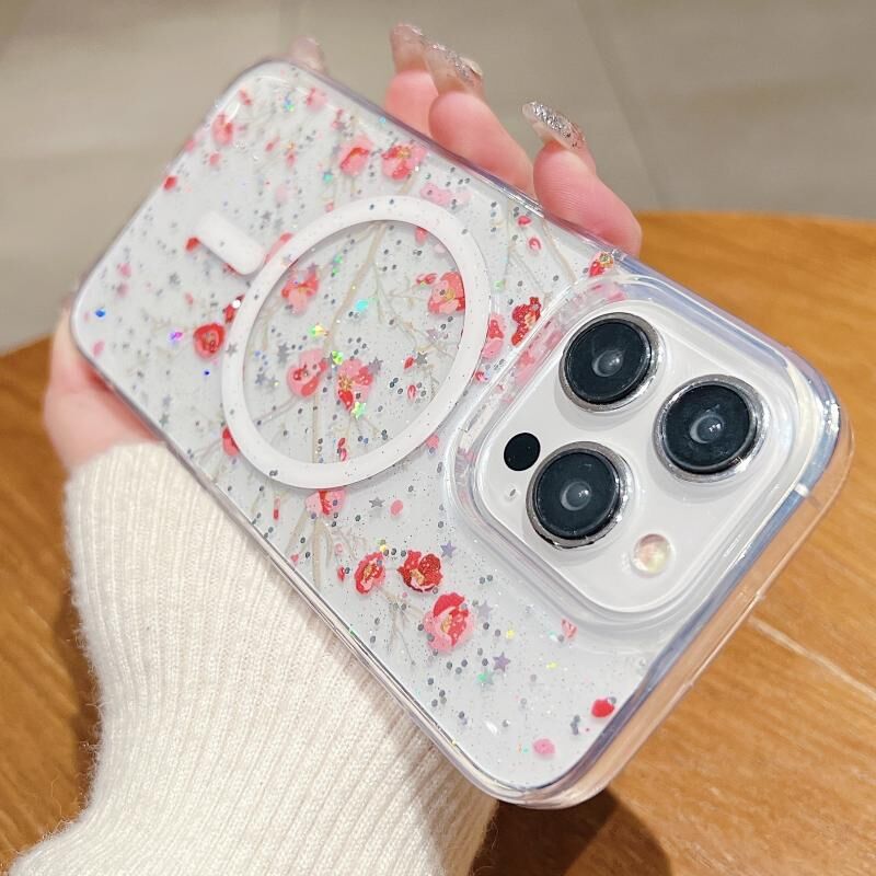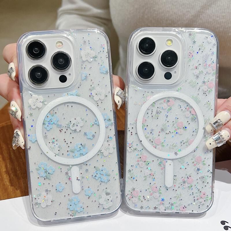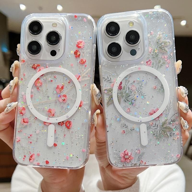 Θήκη τηλεφώνου MagSafe TPU για iPhone 15 Spring Garden (F05 Ροζ Λευκά Λουλούδια)