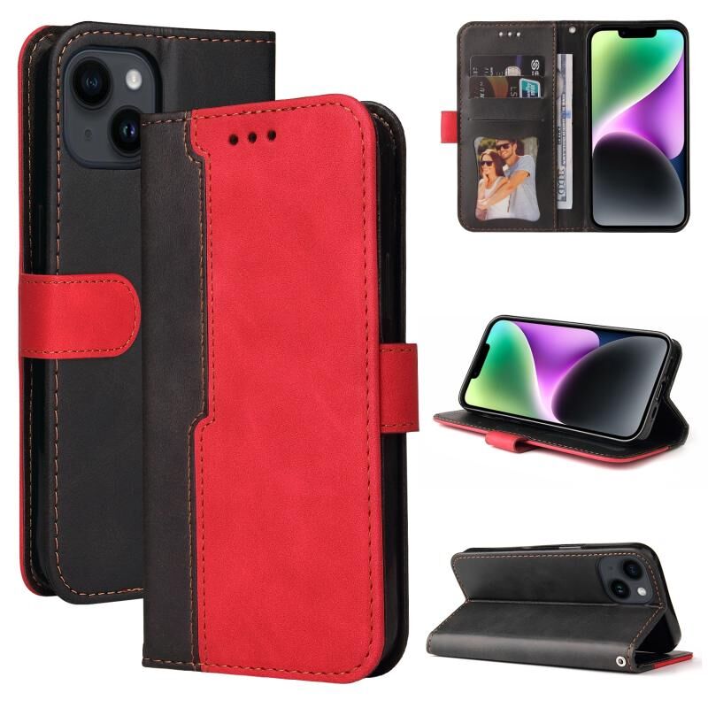Θήκη τηλεφώνου από δέρμα με ραφές για iPhone 15 (Κόκκινο)