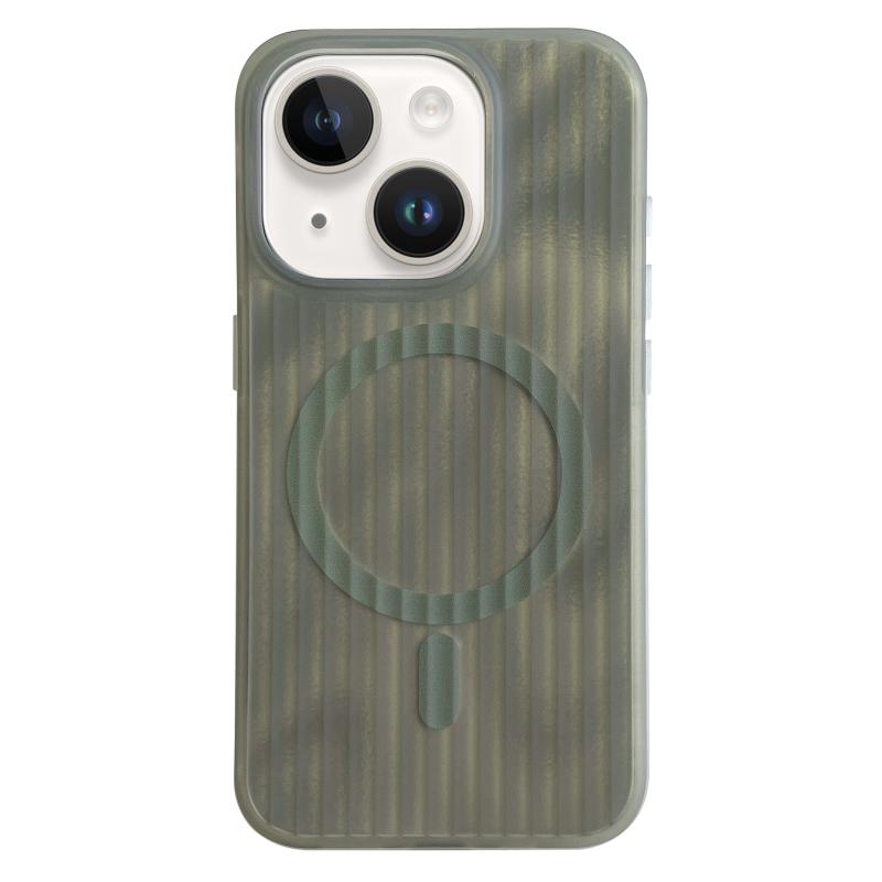 For iPhone 15 Striped Skin Feel Magnetic Magsafe Phone Case(Green)