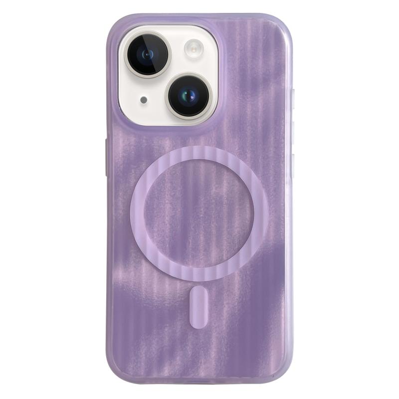 For iPhone 15 Striped Skin Feel Magnetic Magsafe Phone Case(Purple)