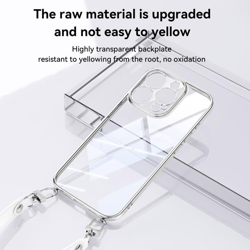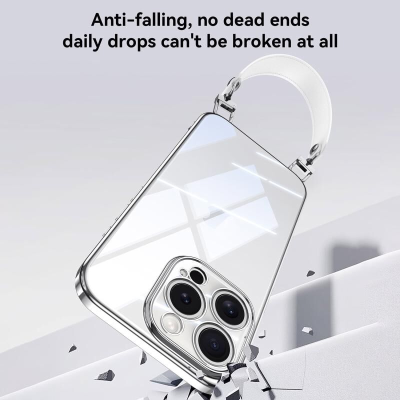 Θήκη κινητού τηλεφώνου SULADA για iPhone 15, διαφανής από εύκαμπτο TPU με επιμετάλλωση και λουρί καρπού (Μωβ) (Μωβ)