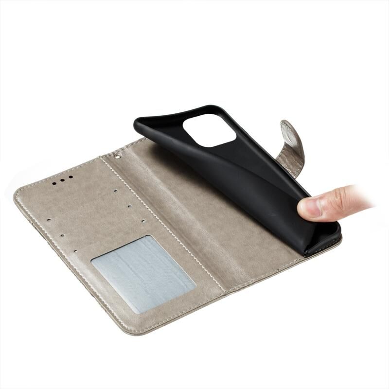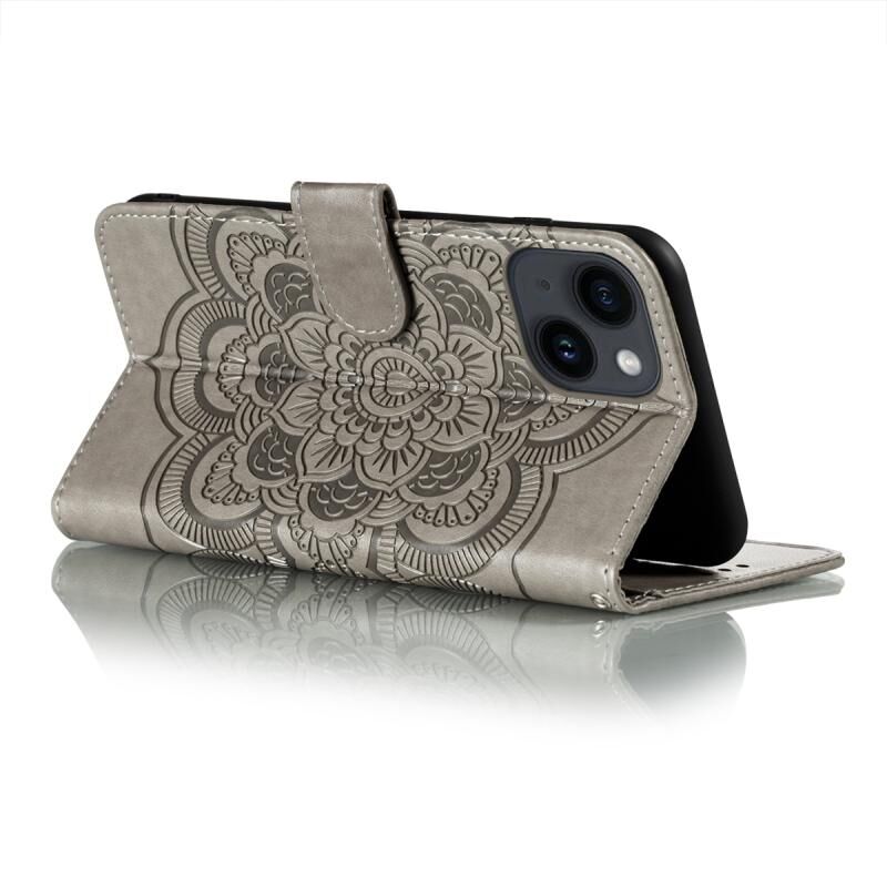 For iPhone 15 Sun Mandala Embossing Leather Phone Case(Grey)