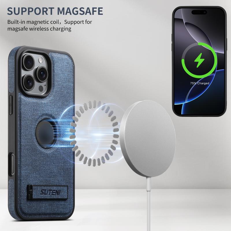 For iPhone 15 Suteni G2 Holder Denim Leather Back MagSafe Phone Case(Blue) (Suteni)