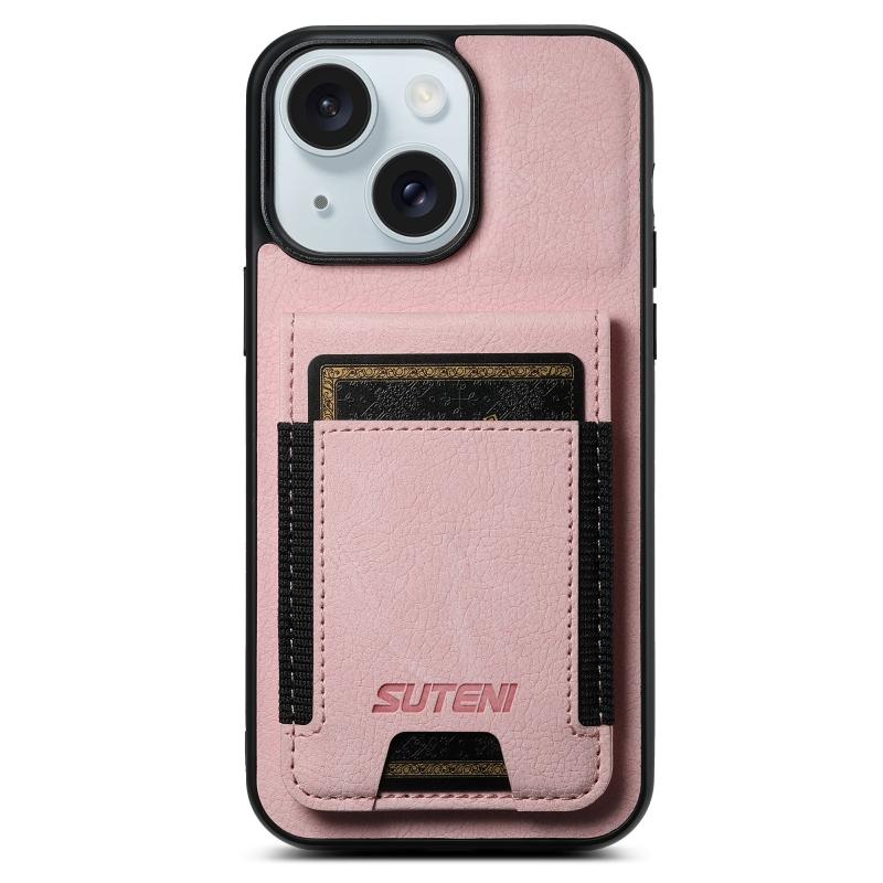 For iPhone 15 Suteni H03 Litchi Leather Card Bag Stand Back Phone Case(Pink) (Suteni)