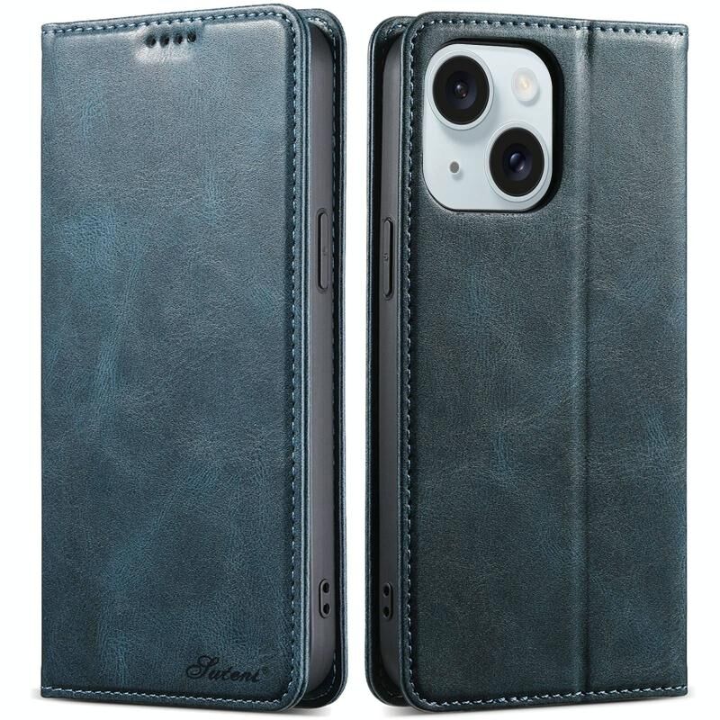 Θήκη τηλεφώνου από δέρμα με κερί λαδιού Suteni J02 για iPhone 15 (Κόκκινο) (Suteni)