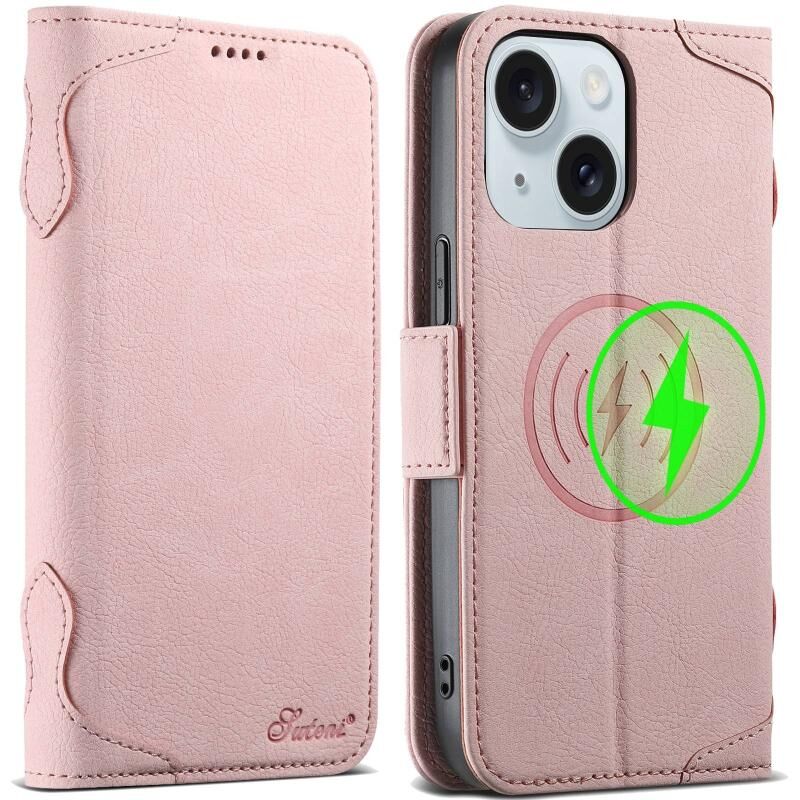 Θήκη τηλεφώνου Suteni J07 πολυλειτουργική οριζόντια με μαγνητική σύνδεση Magsafe από δέρμα για iPhone 15 (Μαύρο) (Suteni)