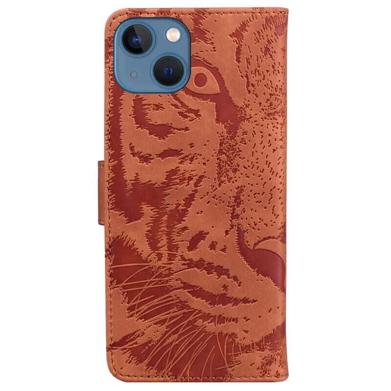 Θήκη τηλεφώνου από δέρμα με ανάγλυφο μοτίβο τίγρης για iPhone 15 (Καφέ)