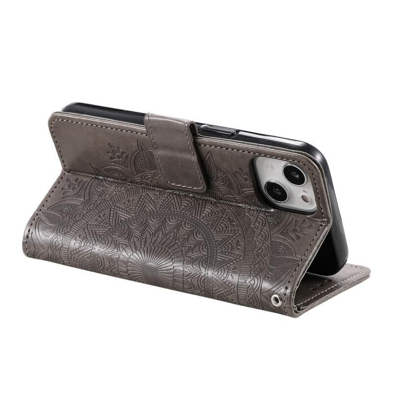 Θήκη τηλεφώνου από δέρμα με ανάγλυφο σχέδιο Totem Flower για iPhone 15 (Πράσινο)