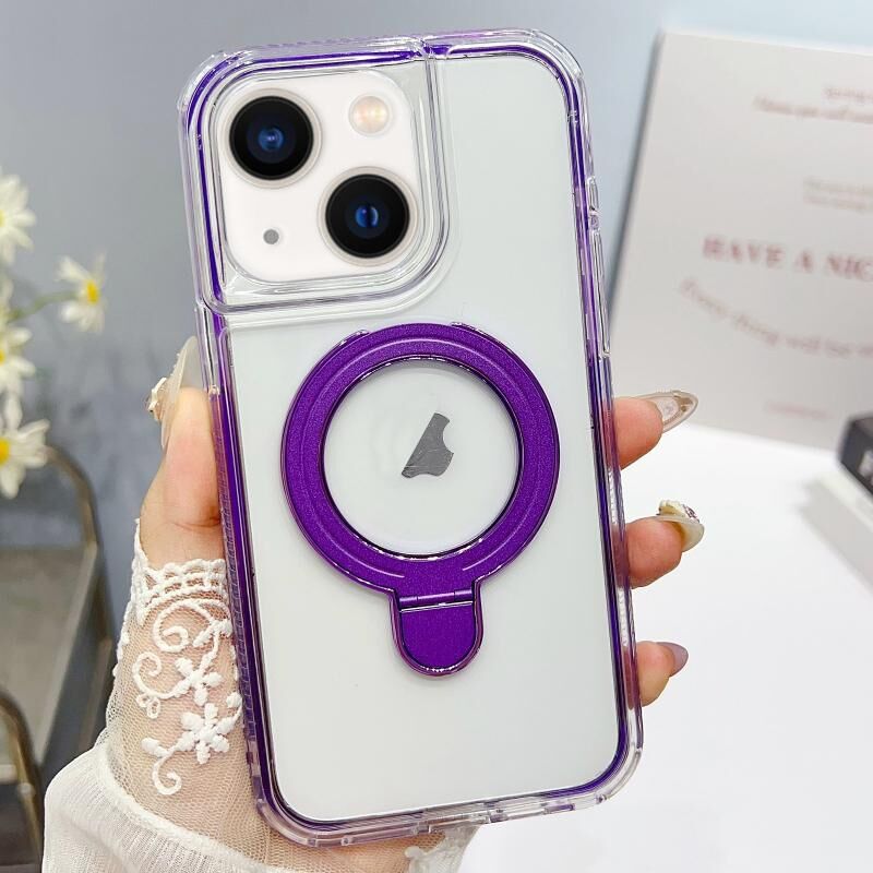 For iPhone 15 Translucent 3 in 1 Holder MagSafe Phone Case(Purple)