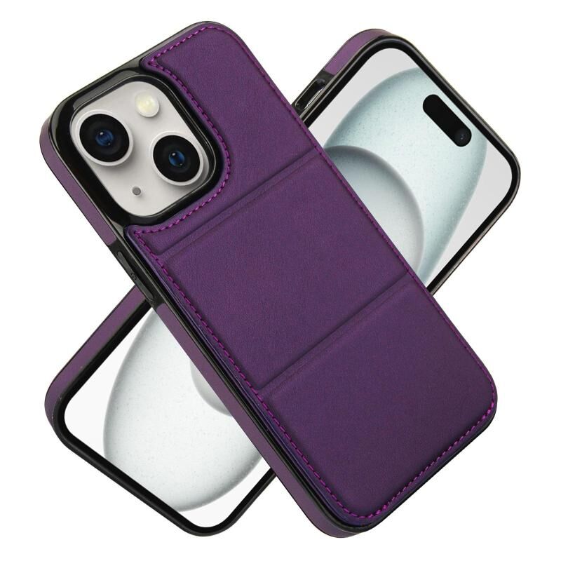 Θήκη τηλεφώνου για iPhone 15, δερμάτινη, τριπλή, με θήκη για κάρτες (Σκούρο μωβ)