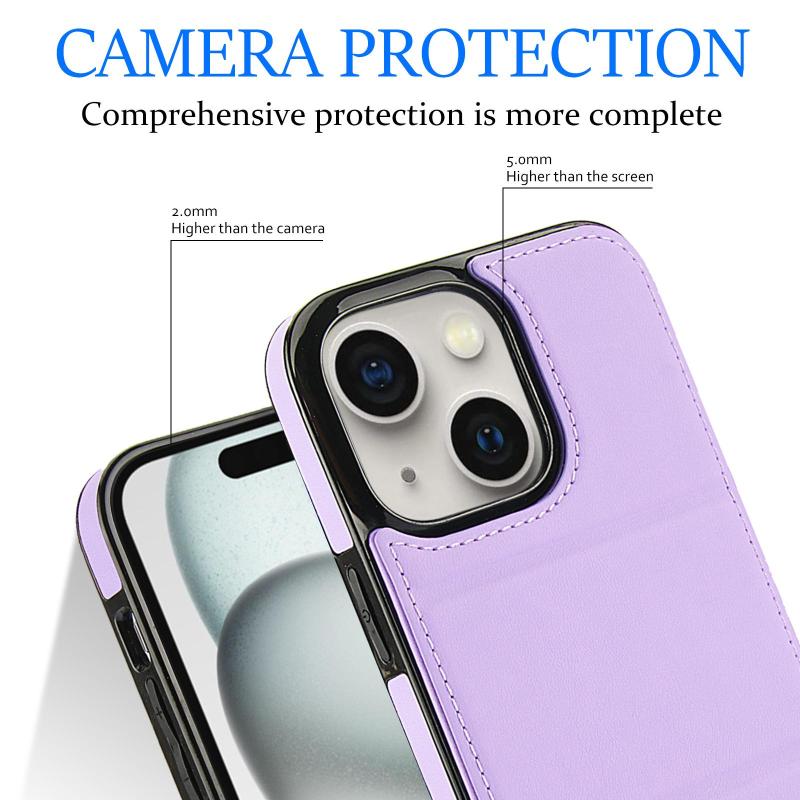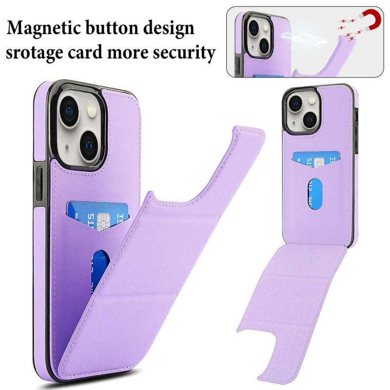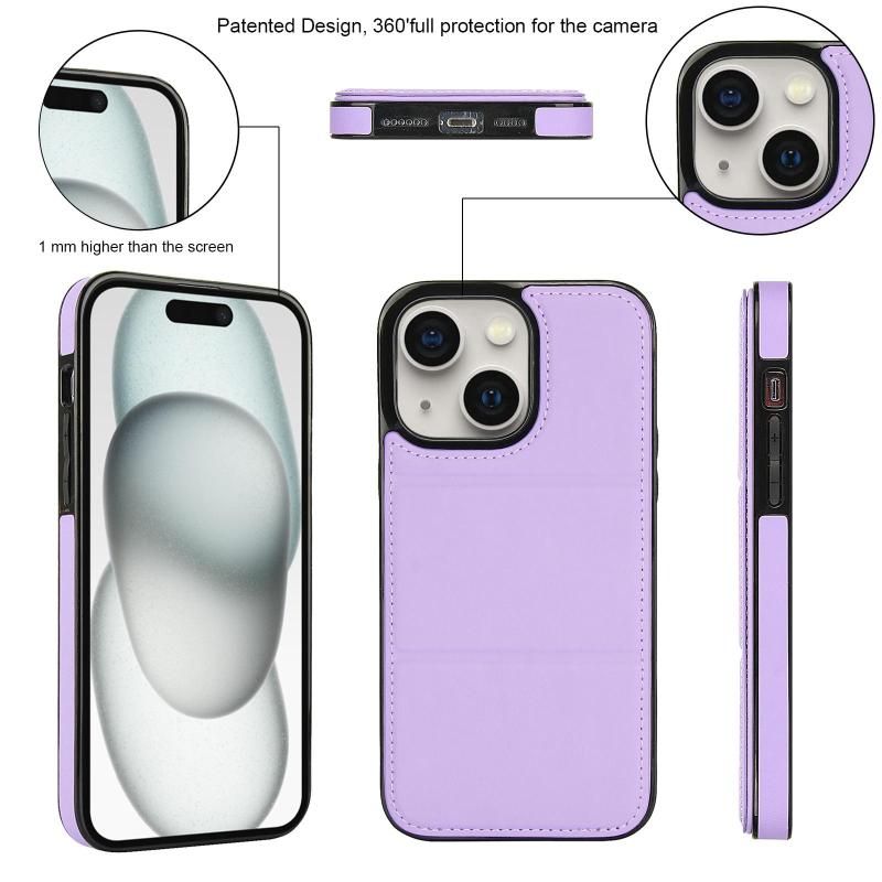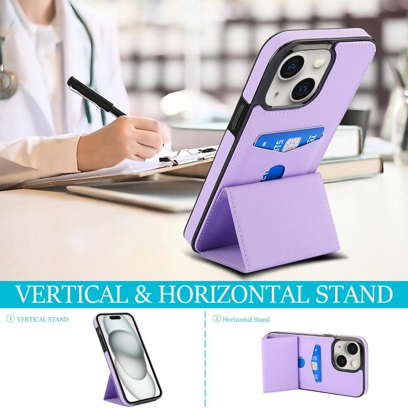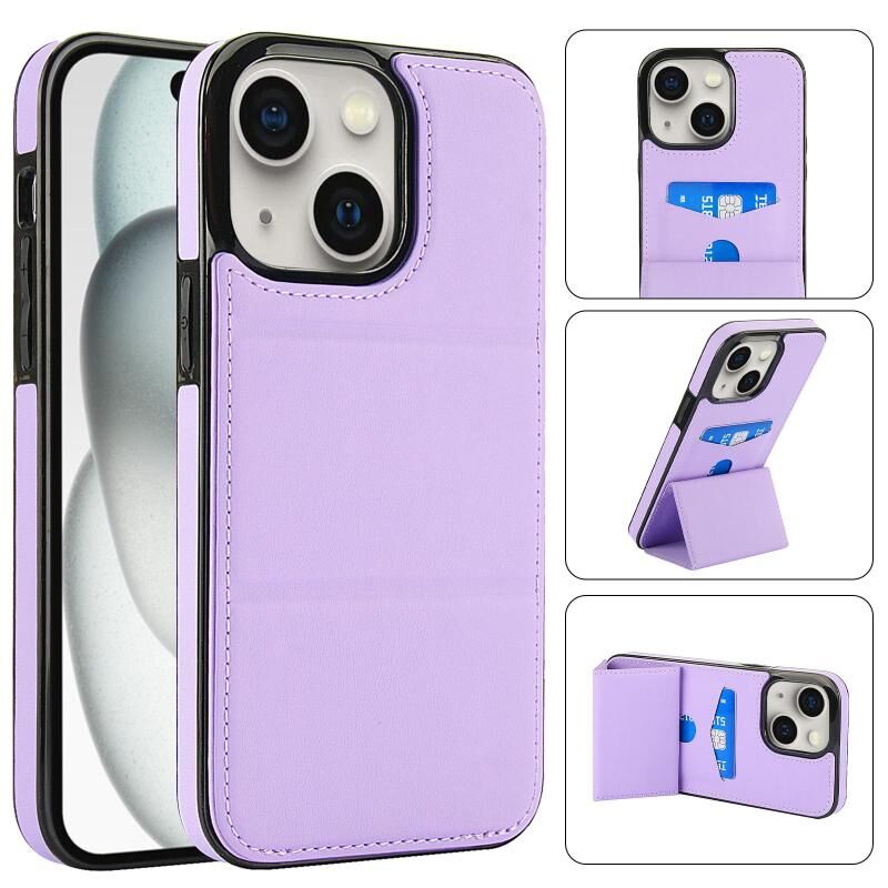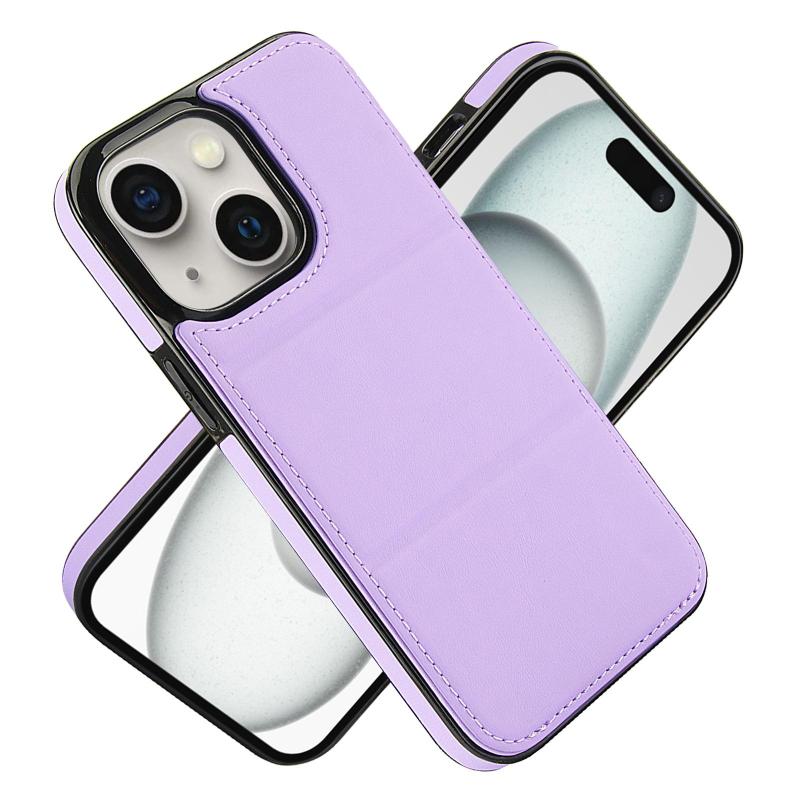 Θήκη τηλεφώνου για iPhone 15, δερμάτινη, τριπλή, με θήκη για κάρτες (ανοιχτό μωβ)