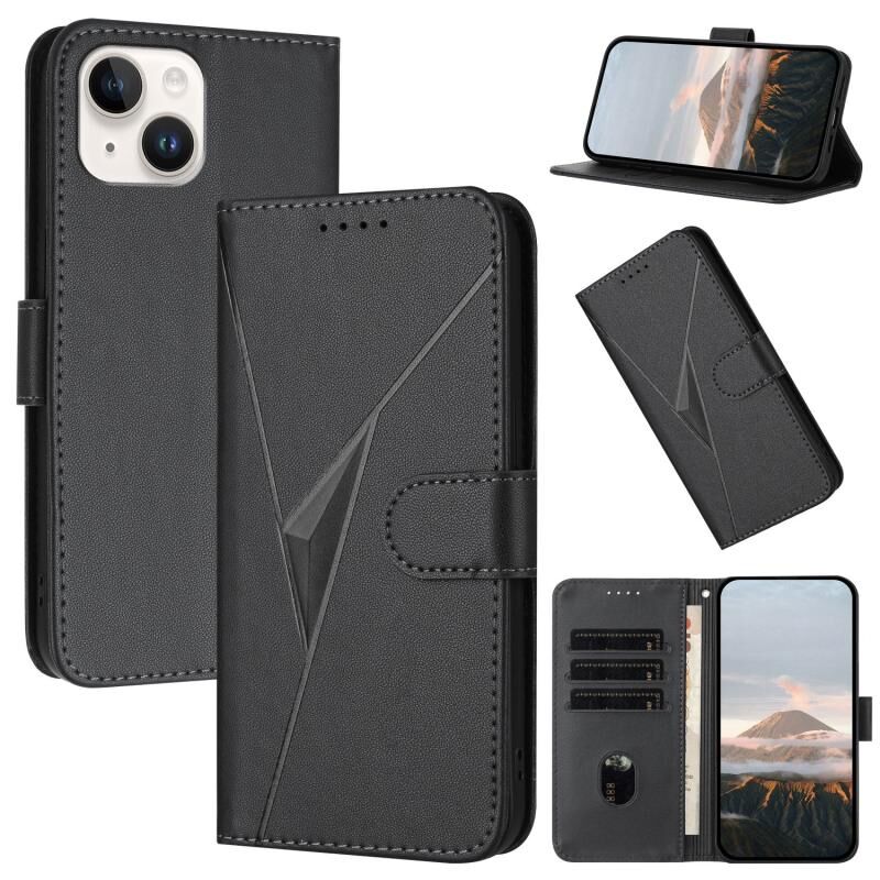 Θήκη τηλεφώνου από δέρμα με αγκράφα τριγωνικού μοτίβου για iPhone 15 (Μαύρο)
