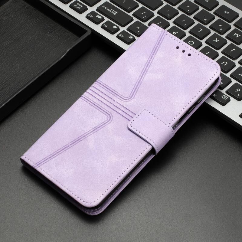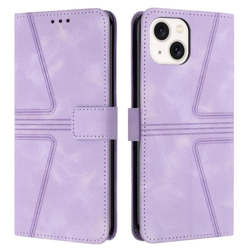 Θήκη τηλεφώνου από δέρμα με συμπαγές τρίγωνο χρώμα για iPhone 15 (Μωβ)