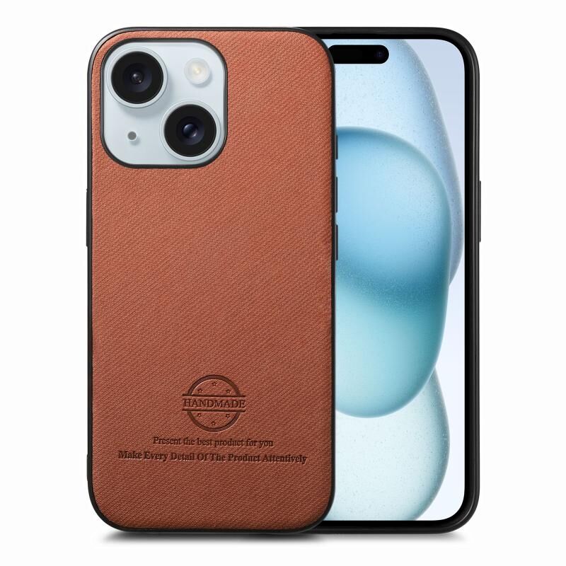 For iPhone 15 Twill Fabric Leather Skin Back Phone Case(Brown)