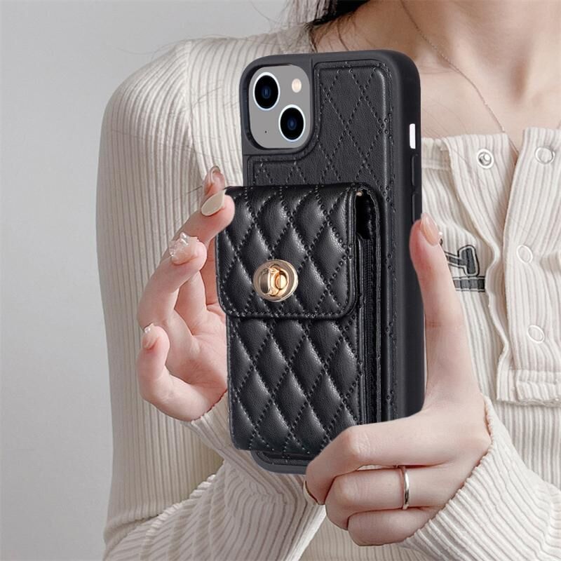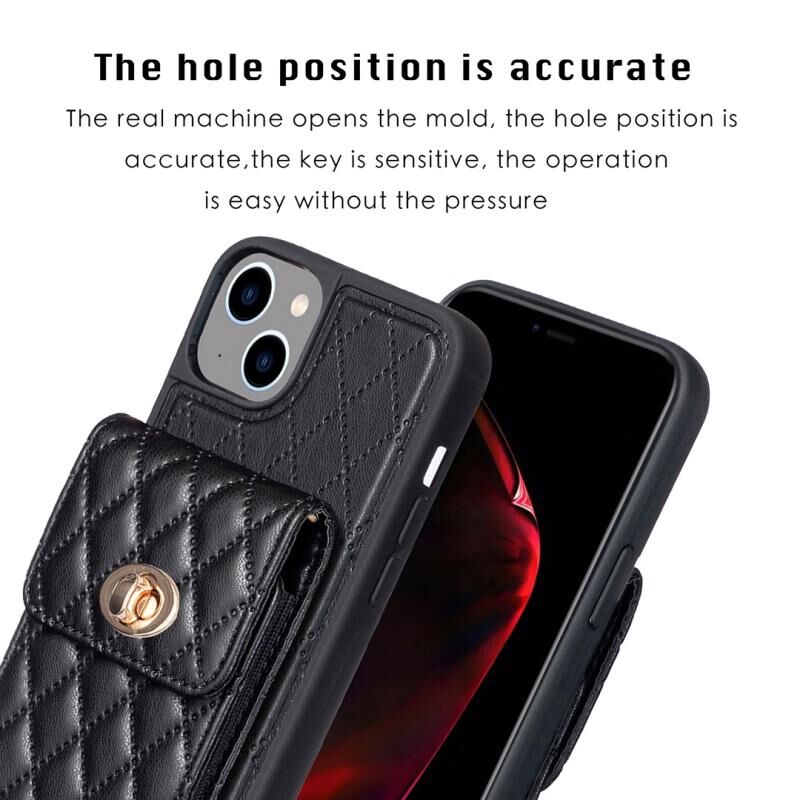 Θήκη τηλεφώνου για iPhone 15, κάθετη, πορτοφόλι, δερμάτινη, με ρόμβους (Μαύρο)