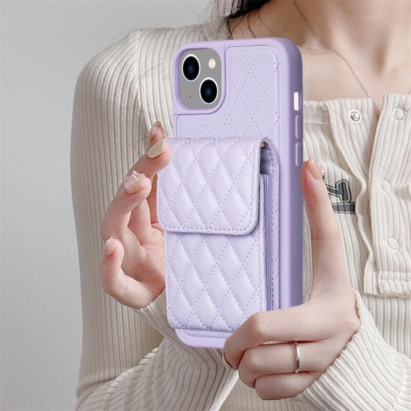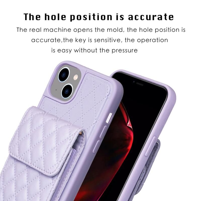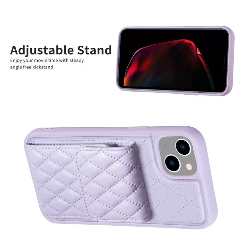 Θήκη τηλεφώνου για iPhone 15, κάθετη, πορτοφόλι, δερμάτινη, ρόμβος (Μωβ)