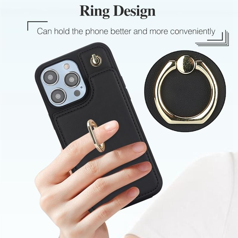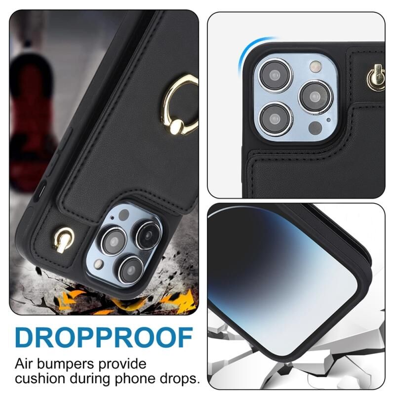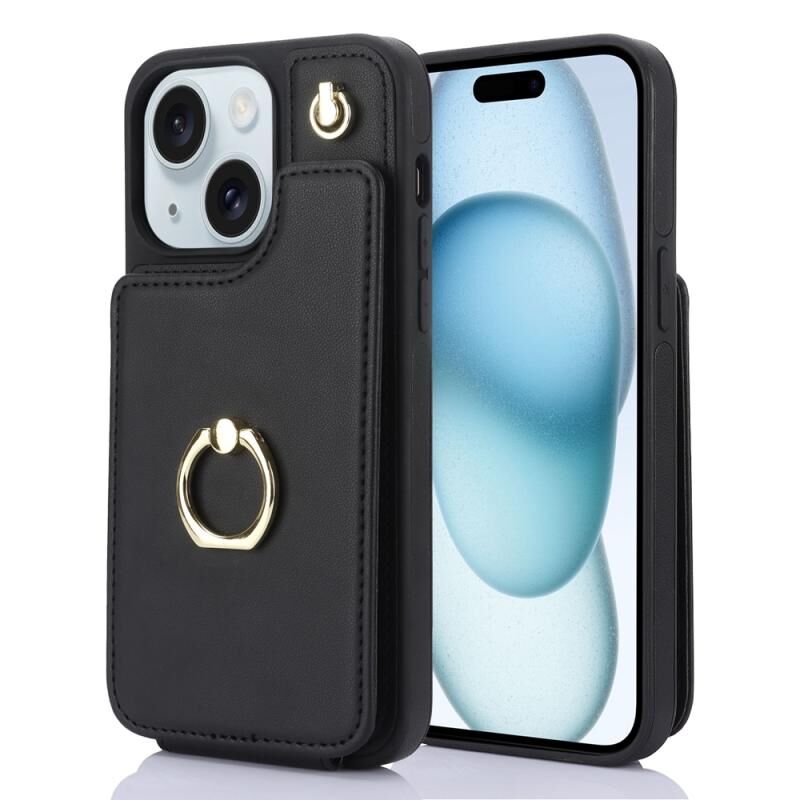 Θήκη κινητού τηλεφώνου με υφή δέρματος για iPhone 15 YM005 με μακρύ κορδόνι (Μαύρο)