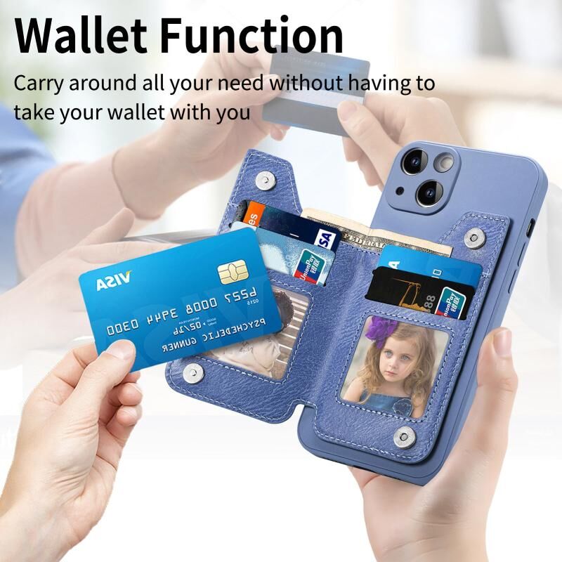 Θήκη για iPhone 15 με φερμουάρ, δερμάτινη, αντικραδασμική (Μπλε)