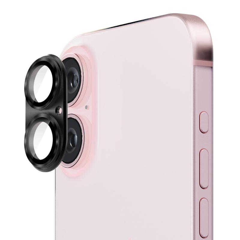 For iPhone 16 / 16 Plus ENKAY Aluminium Alloy Tempered Glass Lens Cover Film(Black) (ENKAY)