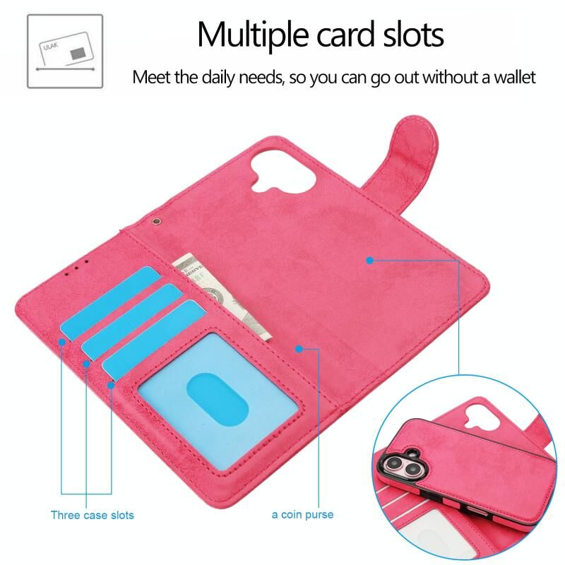 Θήκη δέρματος 2 σε 1 για iPhone 16 με αποσπώμενο σχεδιασμό (Ροζ)