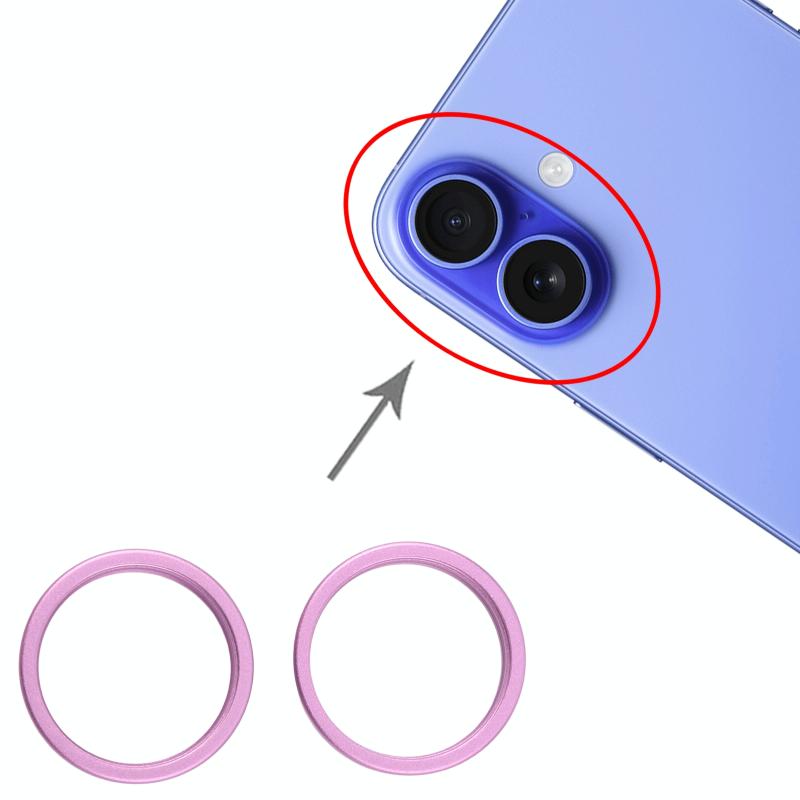 For iPhone 16 2pcs/set Rear Camera Glass Lens Metal Outside Protector Hoop Ring (Purple)
