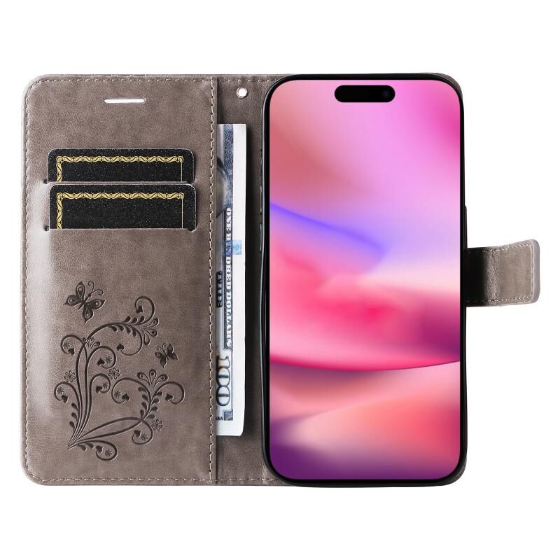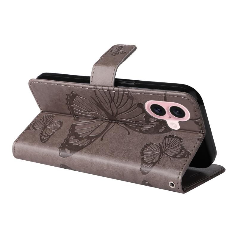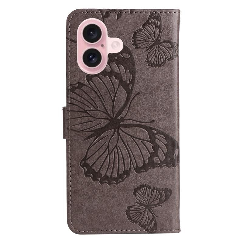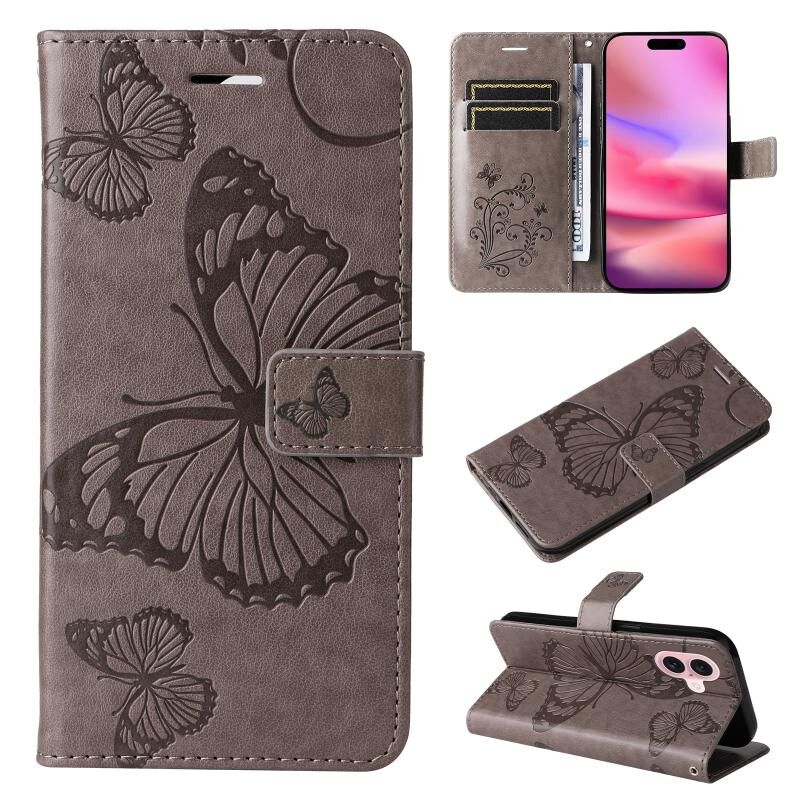 For iPhone 16 3D Butterfly Embossed Pattern Flip Leather Phone Case(Grey)