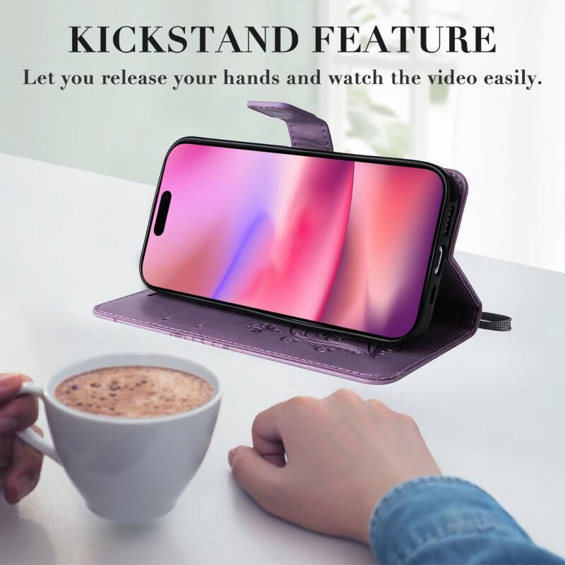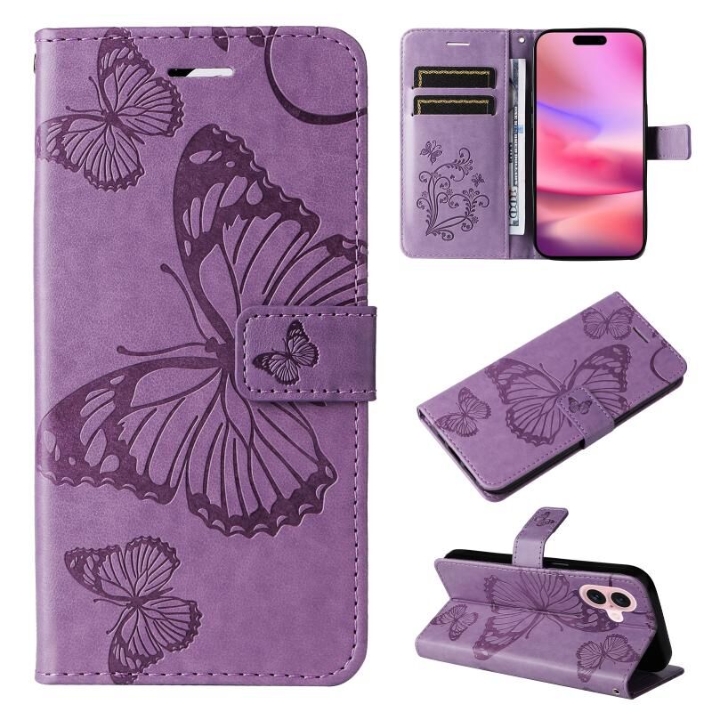 For iPhone 16 3D Butterfly Embossed Pattern Flip Leather Phone Case(Purple)