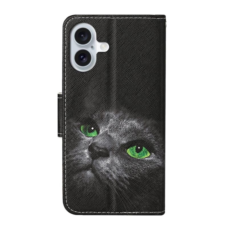 For iPhone 16 3D Colored Drawing Flip Leather Phone Case(Black Cat)