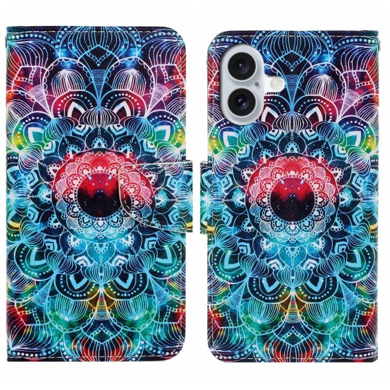 For iPhone 16 3D Colored Drawing Flip Leather Phone Case(Mandala)