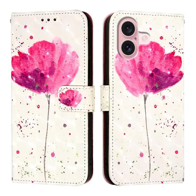 For iPhone 16 3D Painting Horizontal Flip Leather Phone Case(Flower)