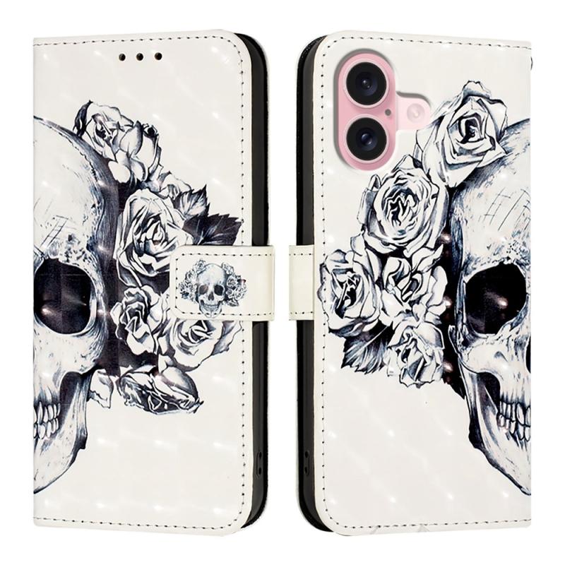 For iPhone 16 3D Painting Horizontal Flip Leather Phone Case(Skull)