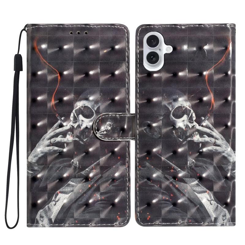 For iPhone 16 3D Pattern Leather Phone Case(Skull)