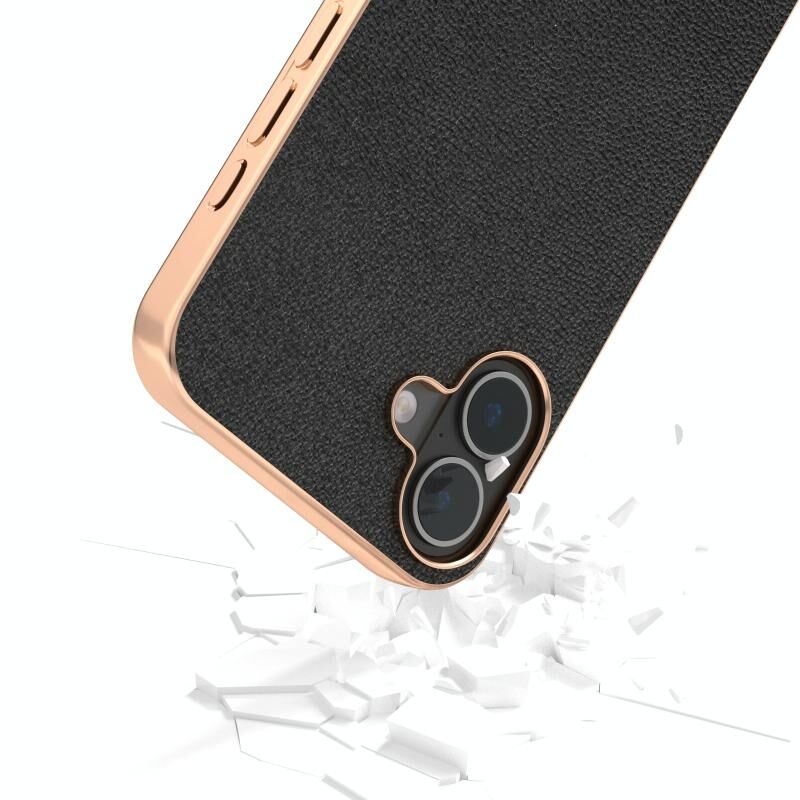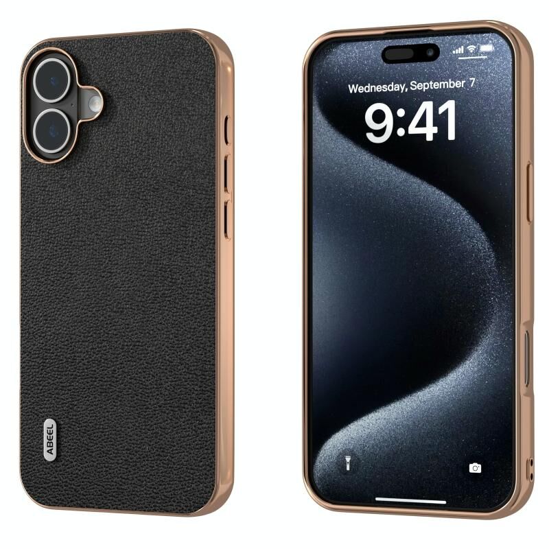 Θήκη τηλεφώνου για iPhone 16 ABEEL με ηλεκτρολυτικό πλαίσιο και γνήσιο δέρμα σειράς Luolai (Κόκκινο)