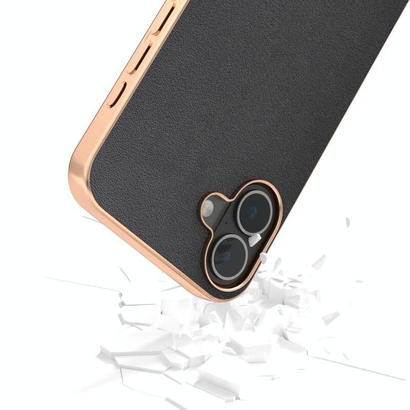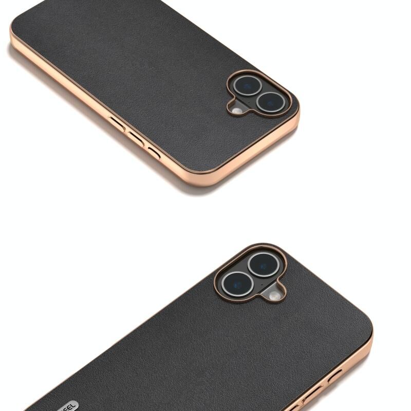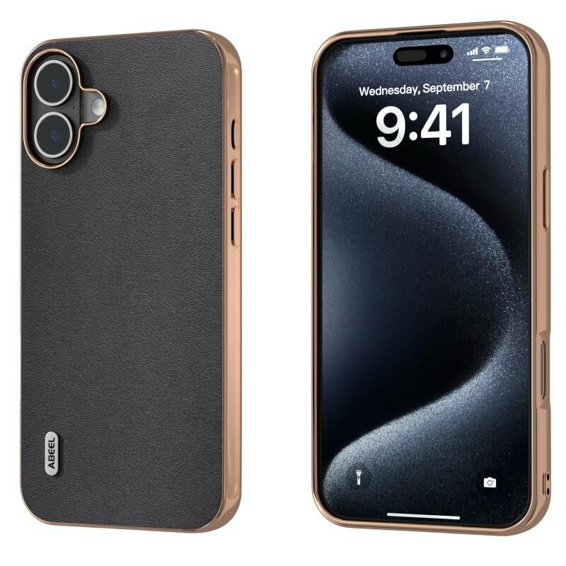 Θήκη τηλεφώνου για iPhone 16 ABEEL με ηλεκτρολυτικό πλαίσιο και γνήσιο δέρμα σειρά Xiaoya (Μαύρο)