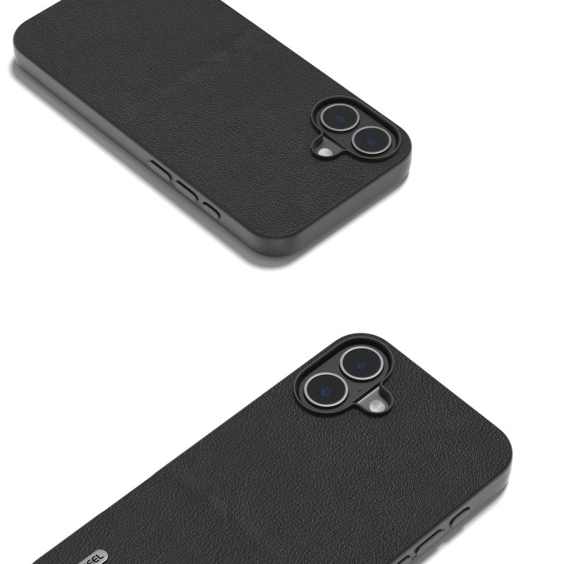 For iPhone 16 ABEEL Genuine Leather Wave Black Edge Phone Case(Black)