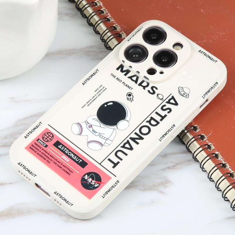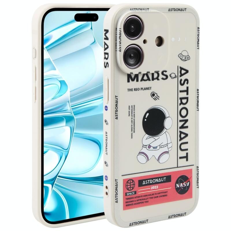 For iPhone 16 Astronaut Pattern Silicone Straight Edge Phone Case(Mars Astronaut-White)