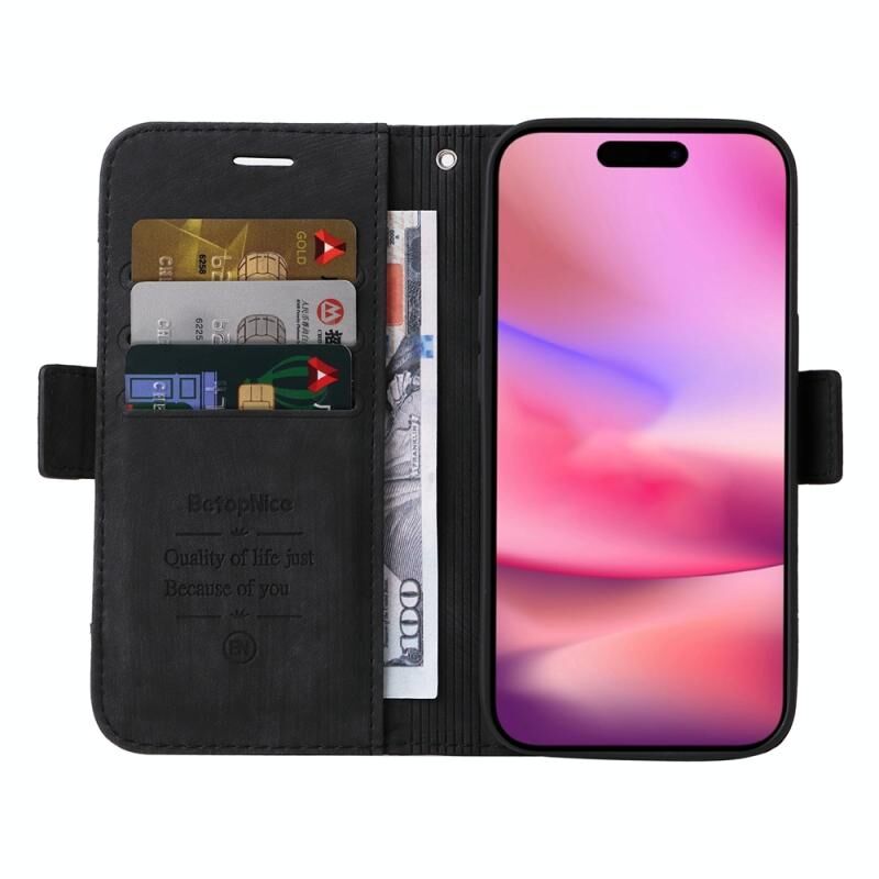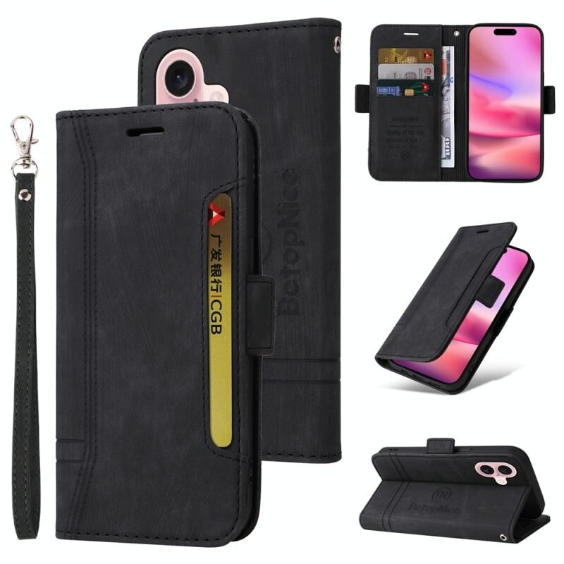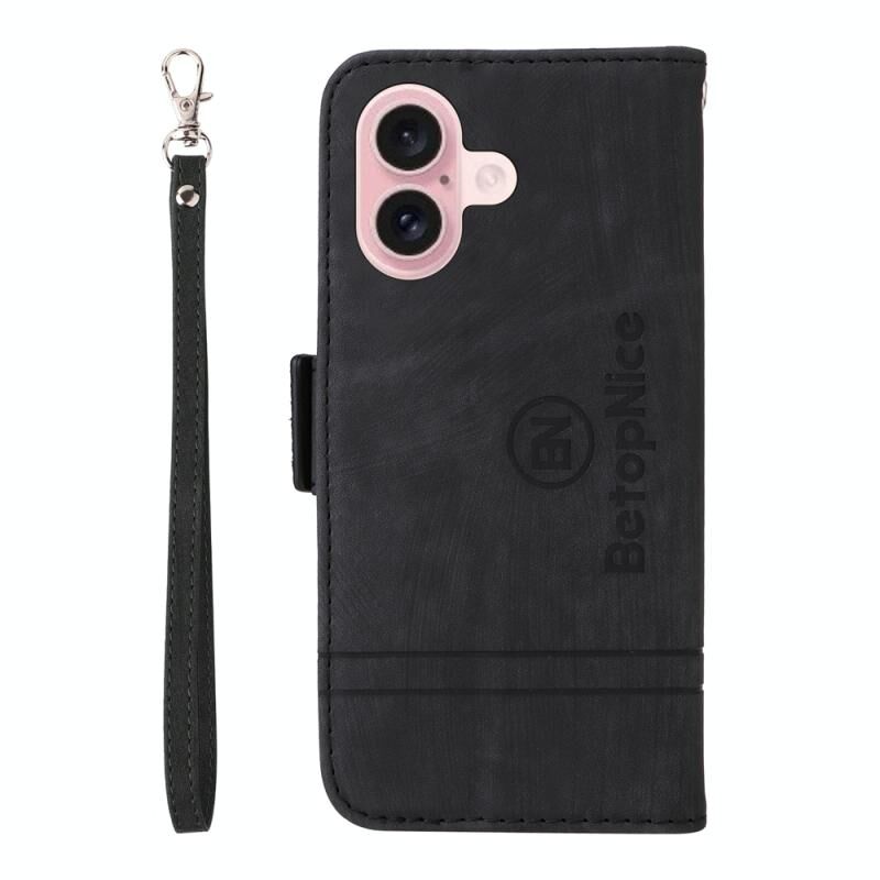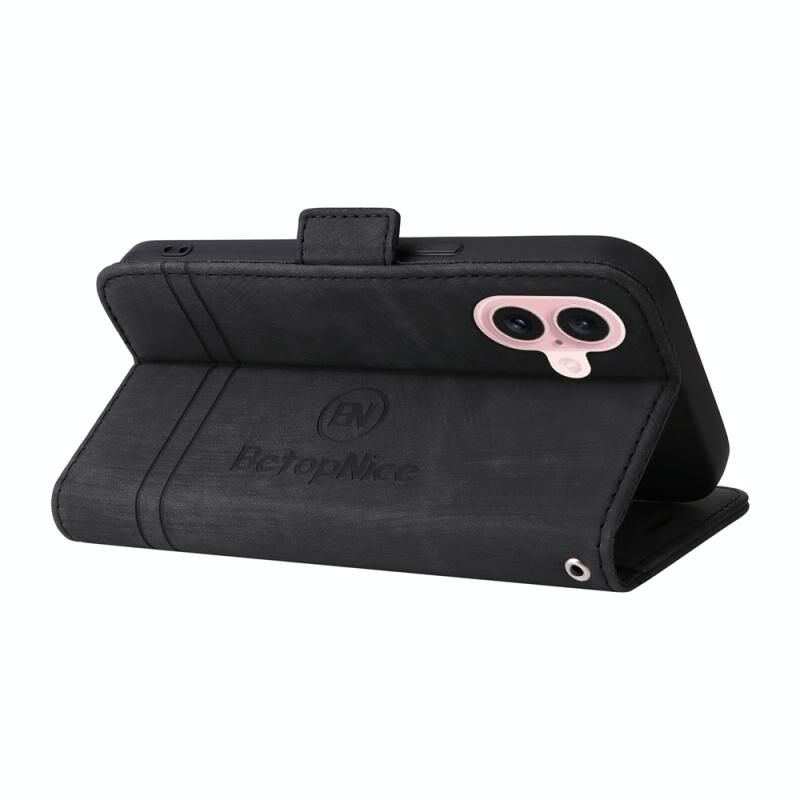 Για iPhone 16 BETOPNICE Δερμάτινη θήκη τηλεφώνου με αγκράφα διπλής όψης (μαύρο) (BETOPNICE)