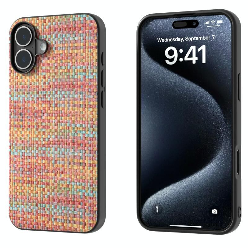 Θήκη τηλεφώνου από PU με υφή πλέγματος για iPhone 16, Μαύρο πλαίσιο (Μανταρίνι)