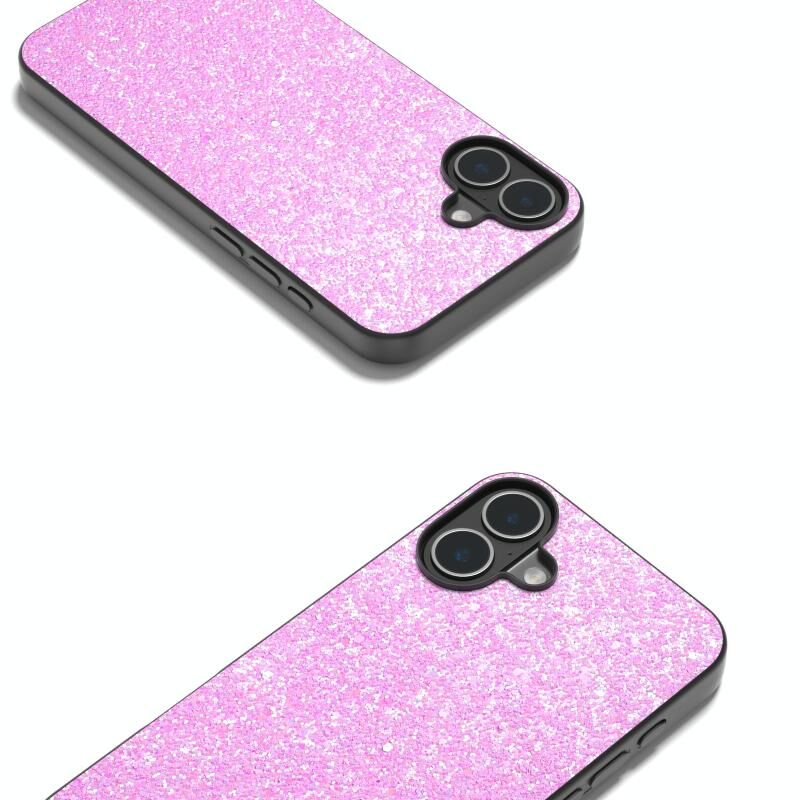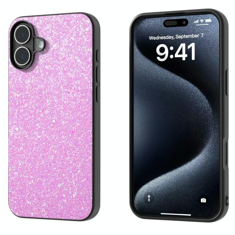 Θήκη τηλεφώνου για iPhone 16 Μαύρο πλαίσιο, πολύχρωμη γκλίτερ (Σκούρο Ροζ)