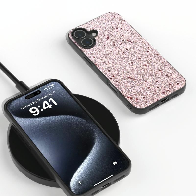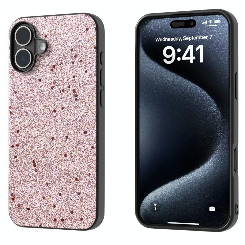Θήκη τηλεφώνου για iPhone 16 Μαύρο πλαίσιο, με γκλίτερ, αντικραδασμική (Λευκό)