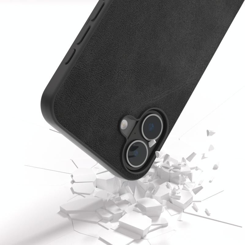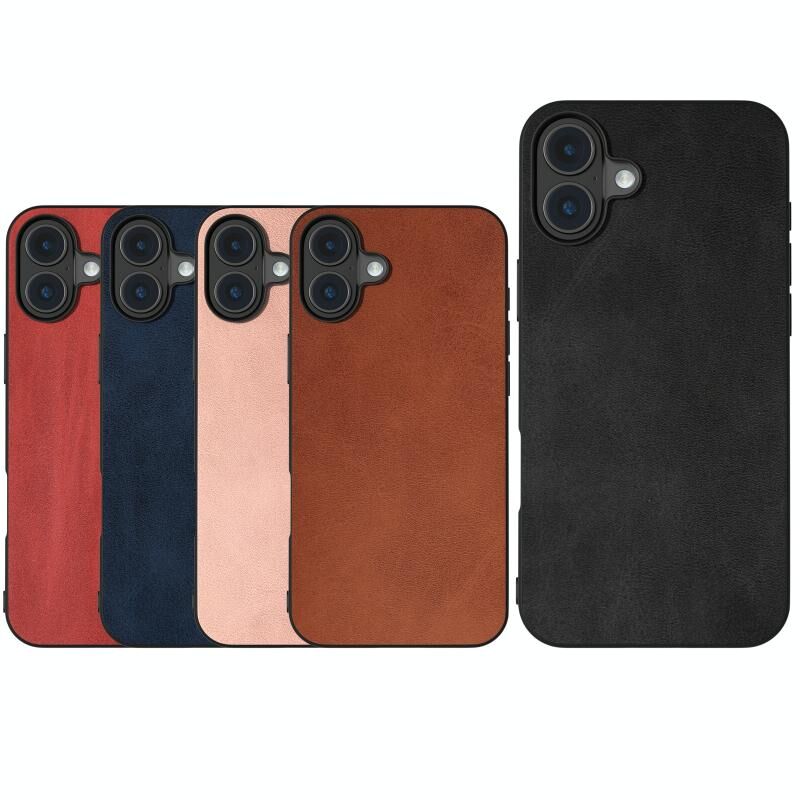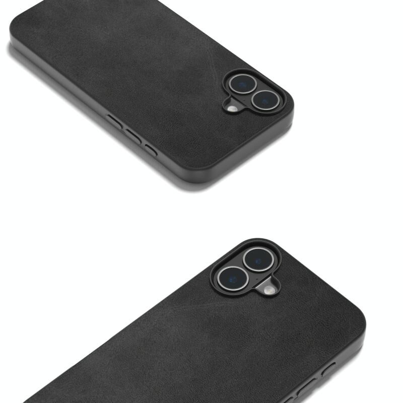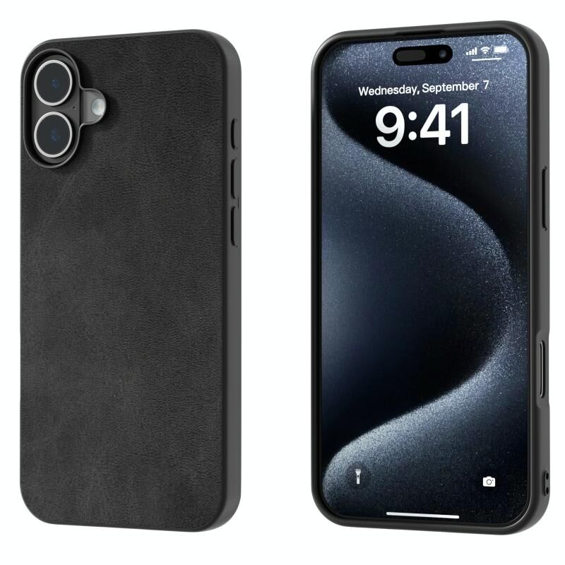 Θήκη τηλεφώνου για iPhone 16 Μαύρο πλαίσιο, Δερμάτινη υφή PU σε δύο χρώματα (Μαύρο)