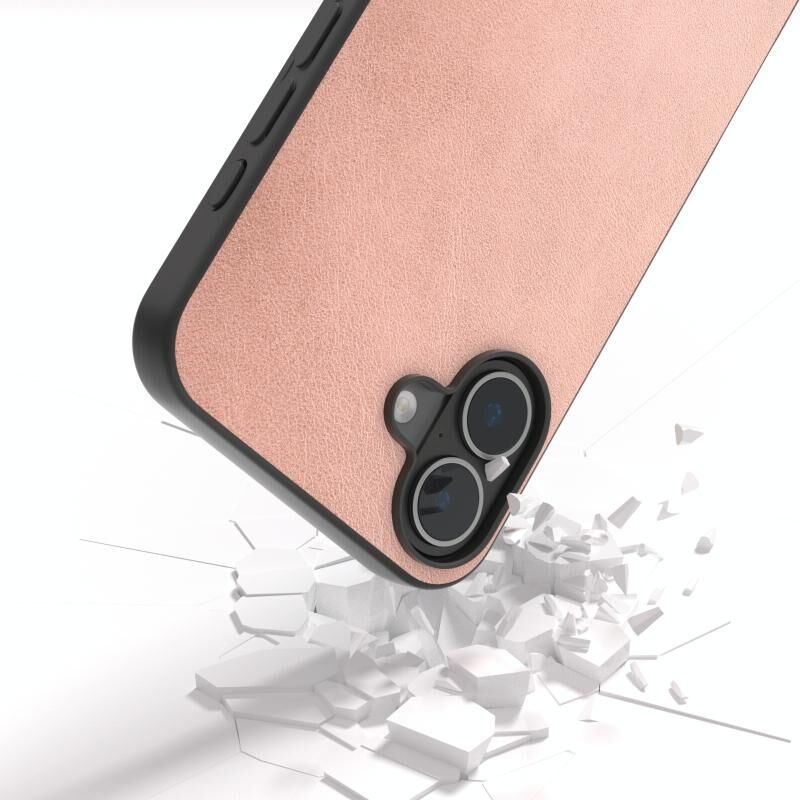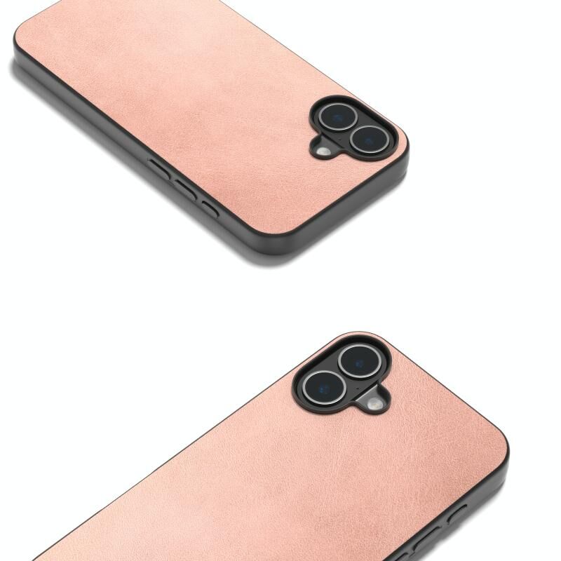 Θήκη τηλεφώνου για iPhone 16 Μαύρο πλαίσιο, Δερμάτινη υφή PU σε δύο χρώματα (Ροζ)