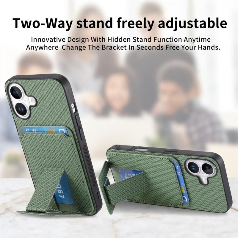 Για το iPhone 16 Carbon Fiber Card τσάντα τσάντα Fold Stand υπόθεση τηλεφώνου (πράσινο)