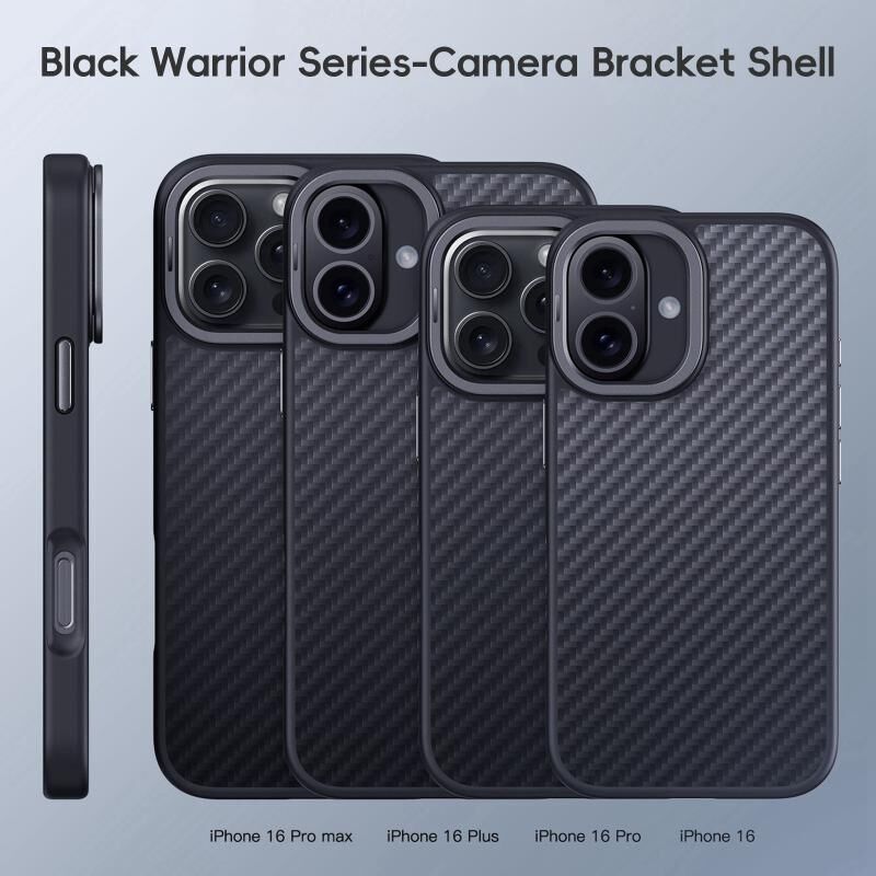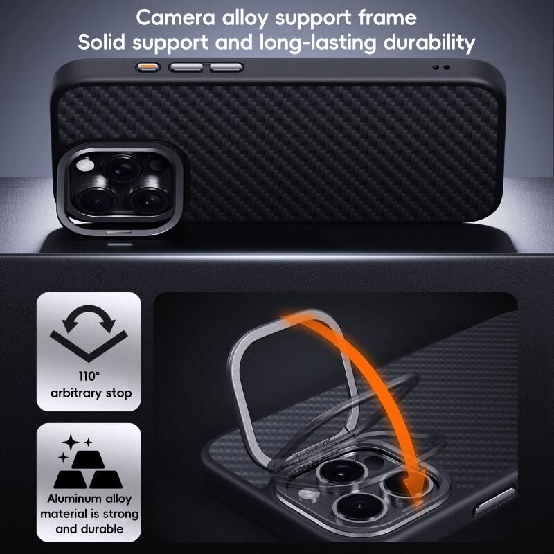 For iPhone 16 Carbon Fiber Kevlar Lens Holder MagSafe Magnetic Phone Case(Black)