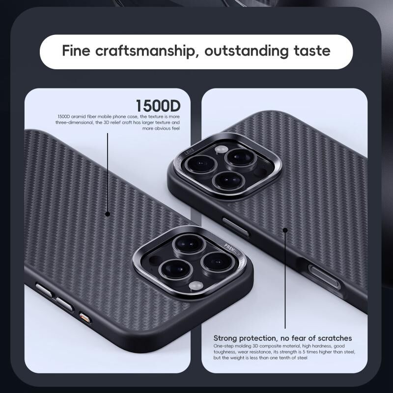 For iPhone 16 Carbon Fiber Kevlar MagSafe Magnetic Phone Case(Black)