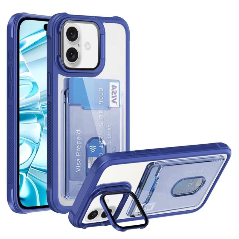 For iPhone 16 Card Bag Holder Acrylic Hybrid TPU Phone Case(Blue)