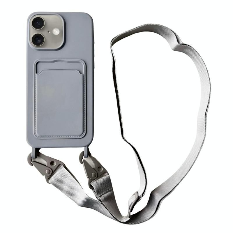 Θήκη σιλικόνης υγρού για iPhone 16 με υποδοχή κάρτας και κορδόνι (Μαύρο)
