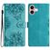 For iPhone 16 Cherry Blossom Butterfly Skin Feel Embossed PU Phone Case(Green)